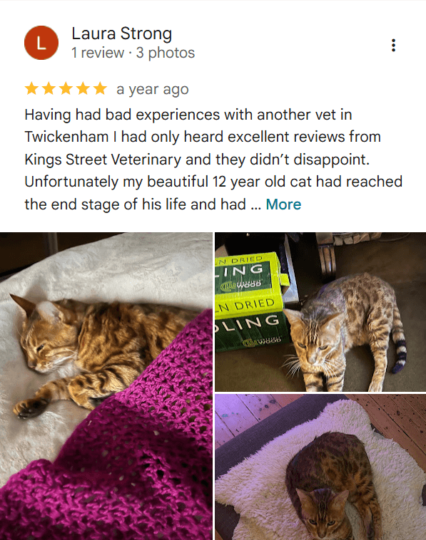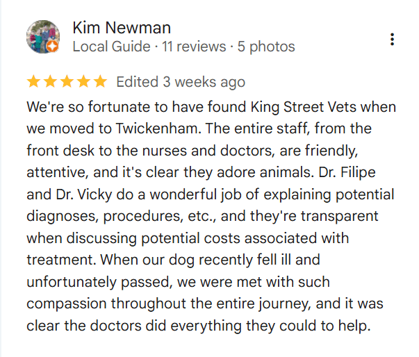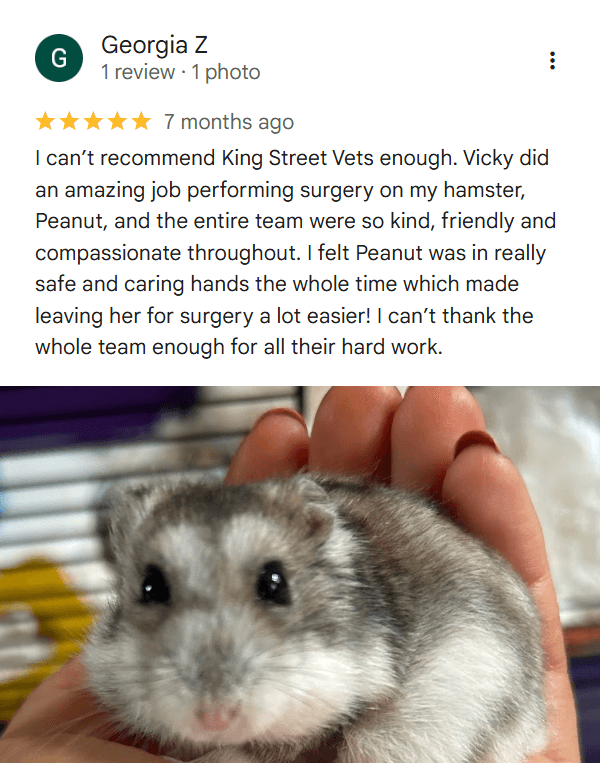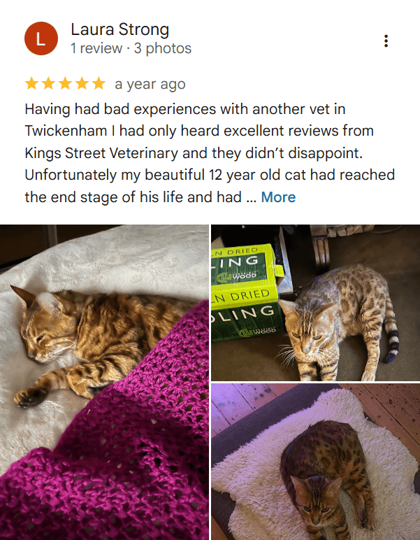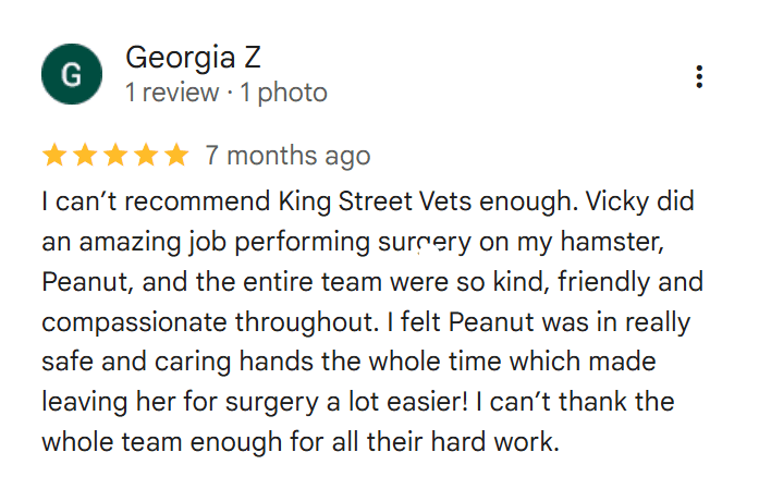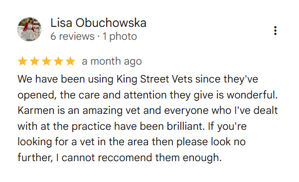 I’m thrilled to welcome you to King Street Vets, just across the river from where I grew up. After graduating from Cambridge in 2010, I worked in mixed practice with exotics before returning to South West London, spending 10 years in Wandsworth.